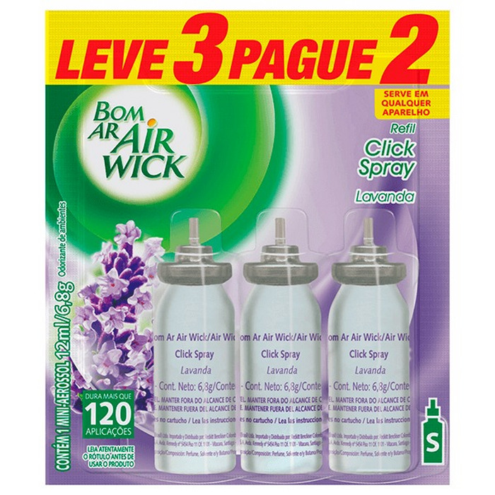 Odorizador click spray lavanda refil 3x12ml bom ar